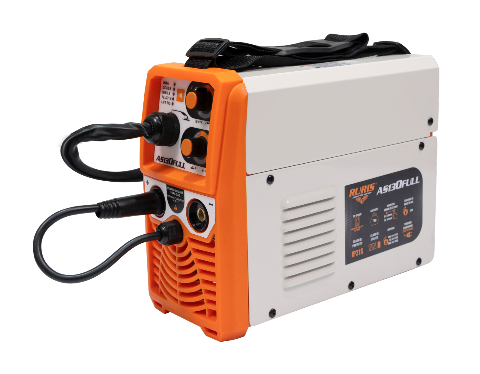 Inverterski aparat za zavarivanje RURIS AS130FULL , amperaže od 130Ah, je kompaktna, lagana i prijenosna oprema za zavarivanje koja može izvoditi nekoliko vrsta zavarivanja: MIG/MAG, LIFT TIG, MMA.