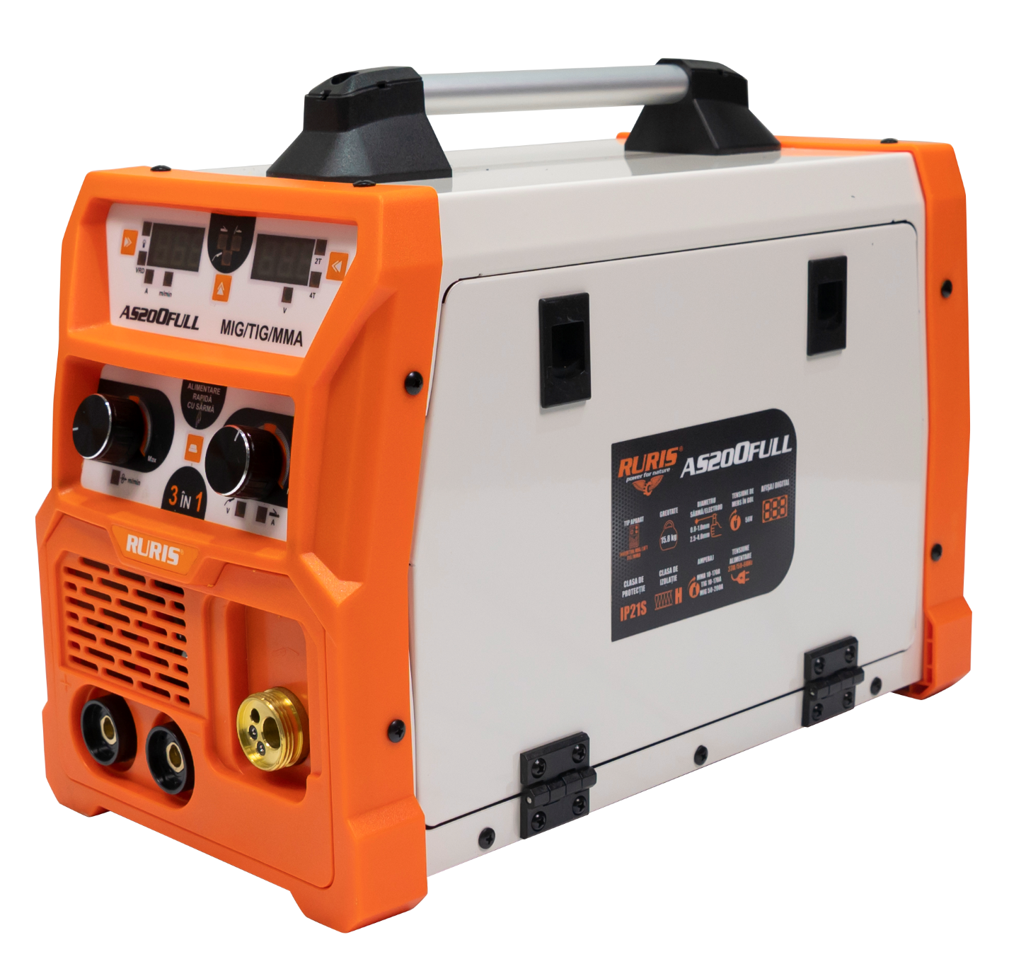 Inverterski aparat za zavarivanje RURIS A200FULL , amperaže od 200Ah, je kompaktna, lagana i prijenosna oprema za zavarivanje koja može izvoditi nekoliko vrsta zavarivanja: MIG/MAG, LIFT TIG, MMA.