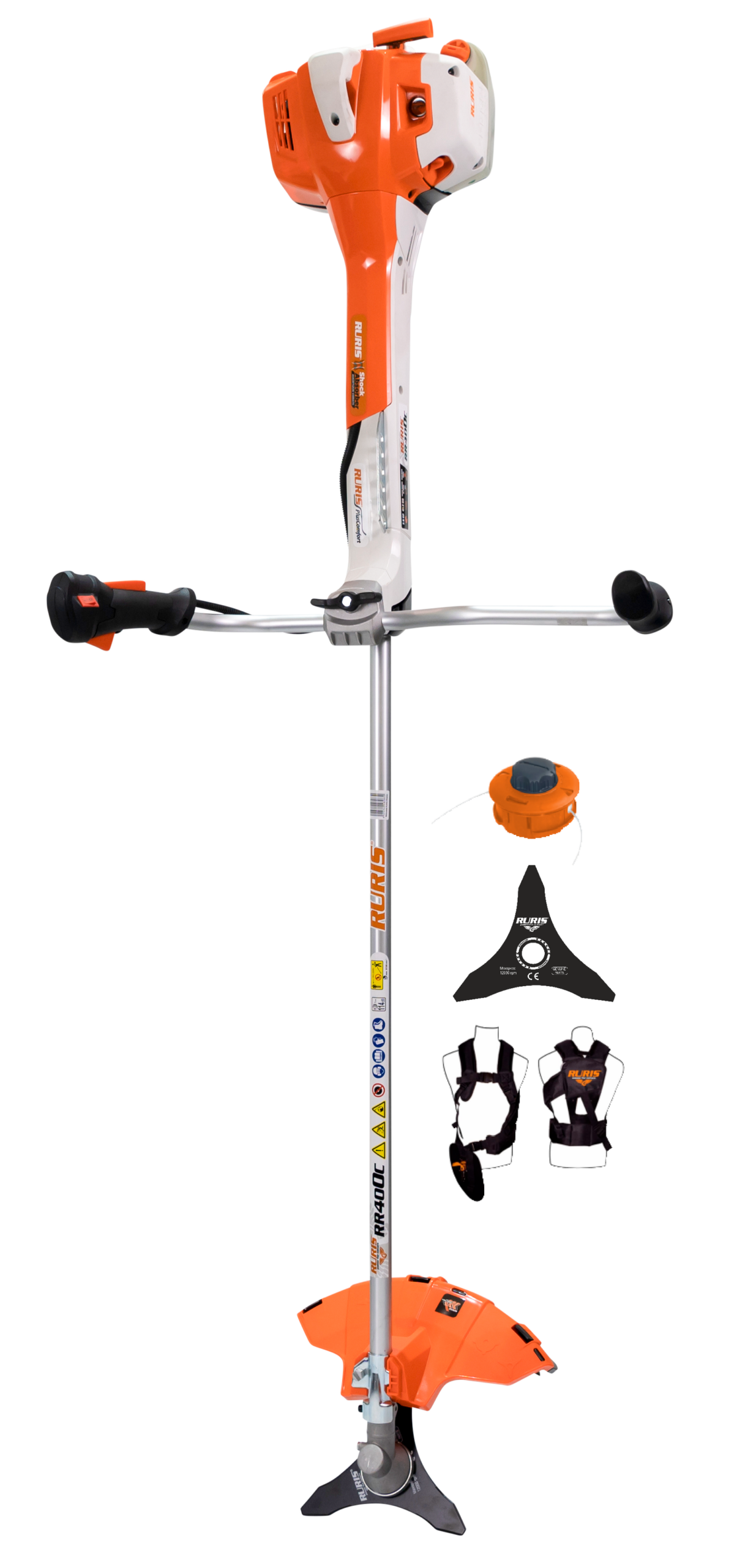 Vrhunski motorni Trimer RURIS RR400C namijenjen je profesionalnim korisnicima u uređenju okoliša i šumarstvu koji intenzivno kose i svakodnevno održavaju zelene površine.