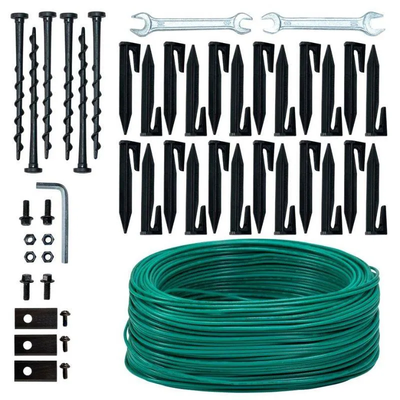 Robotska kosilica RURIS RXR300 dolazi opremljena stanicom za punjenje, obodnom graničnom žicom (130 m), baterijom od 2,0 Ah, 100 nosača za učvršćivanje stanice.