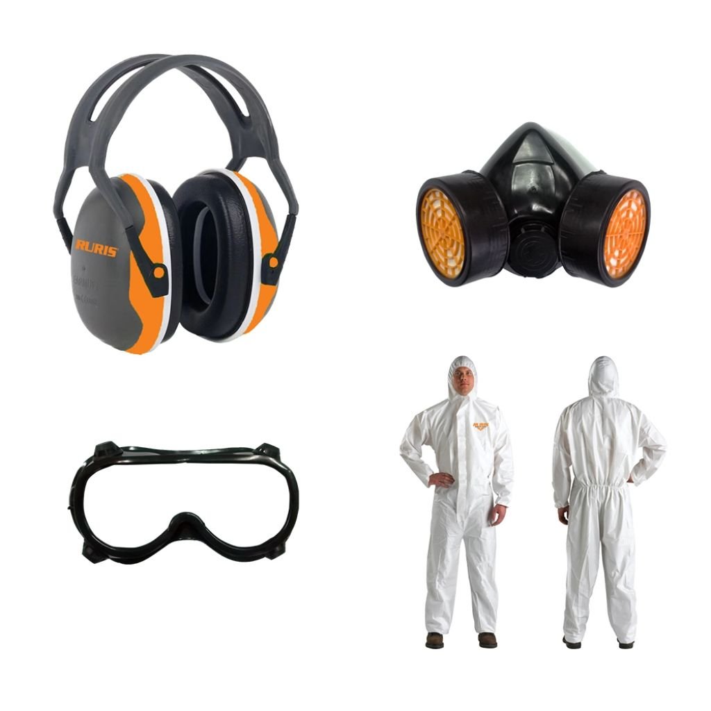 Komplet opreme uključuje : kacigu, masku, naočare i kombinezon. Ova radna oprema nije zaštitna oprema, za upotrebu opasnih hemikalija itd.
