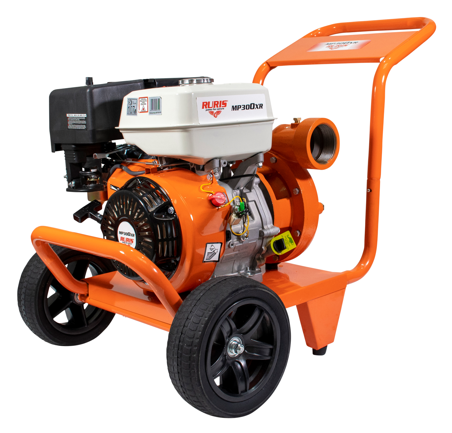 Motorna pumpa RURIS MP300XR opremljena je transportnim okvirom sa točkovima i namijenjena je navodnjavanju biljki zaljevanjem ili kapanjem kroz sistem kap po kap. Šasija, otporna na vibracije i udarce, omogućava upotrebu u bilo kojim radnim uslovima. Motor je zaštićen senzorom ulja, u situacijama kada se koristi s premalo ulja.