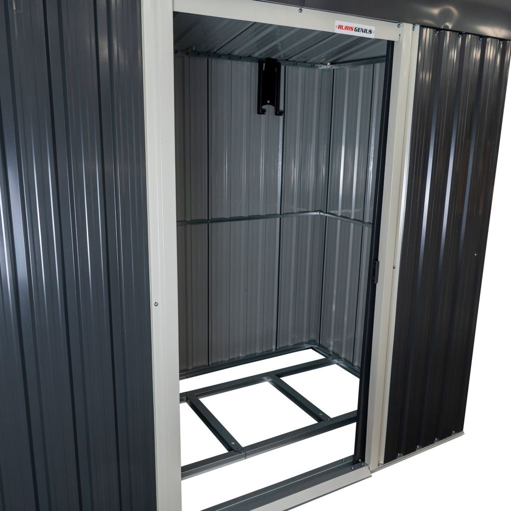 Pocinčana metalna kućica RURIS Genius 196MH idealno je rješenje za skladištenje vrtnog alata. S površinom od približno 2 m², kućica nudi dovoljno prostora za organiziranje opreme kao što su kosilice za travu, bicikli ili alati za „uradi sam“. Izrađen od elektrostatički obojenog pocinčanog čelika, ovaj model nudi visoku otpornost na vremenske uvjete i stabilnost. Šupa RURIS Genius 196MH ima 2 ventilacijska otvora za dobru cirkulaciju zraka i kosi krov koji sprječava nakupljanje vode. Efikasna ventilacija ovog modela sprječava kondenzaciju i održava unutarnju klimu u optimalnim uvjetima. Klizna vrata olakšavaju pristup, a kompaktan dizajn omogućuje postavljanje u vrt, dvorište ili gdje god je potreban dodatni prostor. Istovremeno, omogućuju zaključavanje pomoću zasuna.