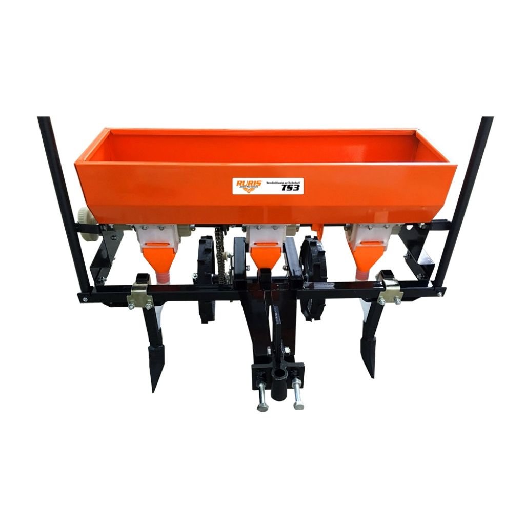TS3 3-redna sijačica može se spojiti na sve RURIS strojeve za obradu tla. Ovaj proizvod je savršen izbor za sjetvu malih i srednjih parcela, pogodan je i za malčiranje i za uzgoj povrća. Razmak sadnje između redova je 35 cm. Ako želite da se redovi uzgajaju na većem razmaku, možete maknuti red iz sredine i tako povećati razmak na 70 cm.