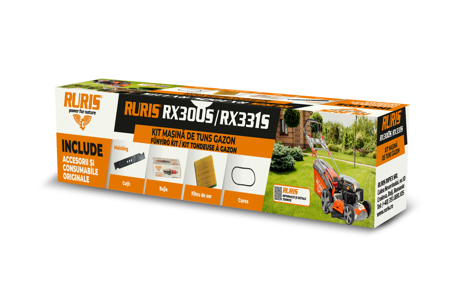 Komplet kosilice RURIS RX300S / RX331S sadrži komponente potrebne za održavanje opreme, koje se često mijenjaju. S ovim kompletom kupac će sigurno uživati ​​u performansama kosilice RURIS RX300S / RX331S dugo vremena. Komplet sadrži: nož s funkcijom malčiranja, svjećicu, filter zraka, remen, komplet vijaka.