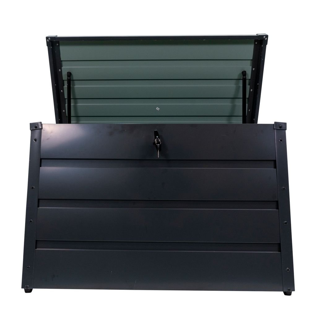 Napravljene od pocinčanog čelika (materijala poznatog po svojoj visokoj otpornosti), kutije RURIS SmartYD 100M nude praktično rješenje za održavanje reda u domaćinstvu, garaži, radionici ili vrtu. Istovremeno, materijal je otporan na vremenske uvjete i UV zrake, što RURIS SmartYD 130M čini idealnim za vanjsku upotrebu. Sa svojim funkcionalnim dizajnom i kapacitetom od 300L, kutije za odlaganje RURIS doprinose efikasnosti prostora i brzom pristupu stvarima koje su vam potrebne. Veličina RURIS SmartYD 100M je 100 x 61 x 62 cm, a maksimalno opterećenje je 80 kg. Jedna od prednosti kutija za odlaganje RURIS je sistem otvaranja poklopca s jastučićima, koji osigurava udobnu i sigurnu upotrebu.Kutije su također opremljene mehanizmom za zaključavanje s dva položaja, što pruža dodatnu sigurnost i prilagodljivost ovisno o potrebama korištenja.