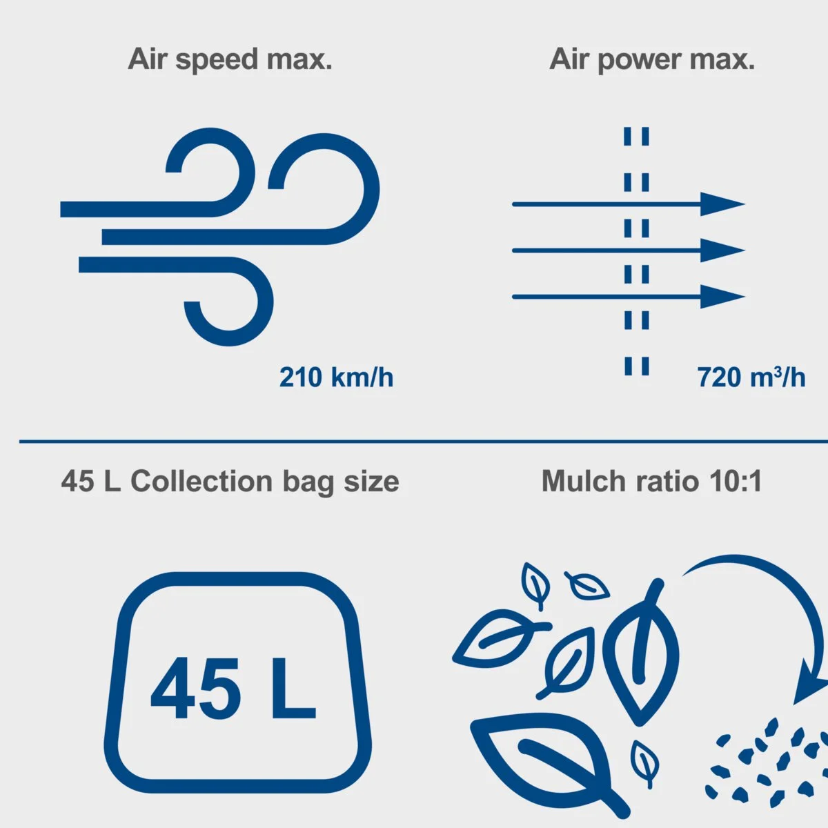Scheppach akumulatorski usisivač/duvač za lišće BC-BLV720-X sa funkcijom 4-u-1 – moćnom duvaljkom, efikasnim usisivačem lišća, funkcijom usitnjavanja i integrisanom vrećom za sakupljanje – praktično je kompletno rješenje za sve zahtjeve za njegu vrta. Zahvaljujući velikoj brzini vazduha od 210 km/h i protoku vazduha od 720 m3/h, BC-BLV720-X bez napora uklanja lišće, pokošenu travu ili druge zagađivače. Zahvaljujući integriranoj funkciji usitnjavanja, listovi se usitnjavaju i skupljaju u veliku vreću za sakupljanje od 45 litara. Akumulatorski usisivač/duvač za lišće pokreće snažan motor bez četkica. Ovaj motor bez četkica osigurava posebno visoku efikasnost, duže vrijeme rada, dug vijek trajanja i manje habanje. Kao dio Scheppach IXES 20-voltne serije, sve baterije i punjači iz serije sistema mogu se kombinovati sa BC-BLV720-X. Baterija i punjač su dostupni zasebno.