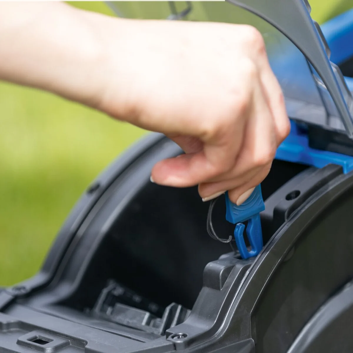Odeljak za bateriju sa sigurnosnim ključem i preklopnim zaštitnim poklopcem Graničnik za obradu ivica travnjaka Sklopiva ručka |
