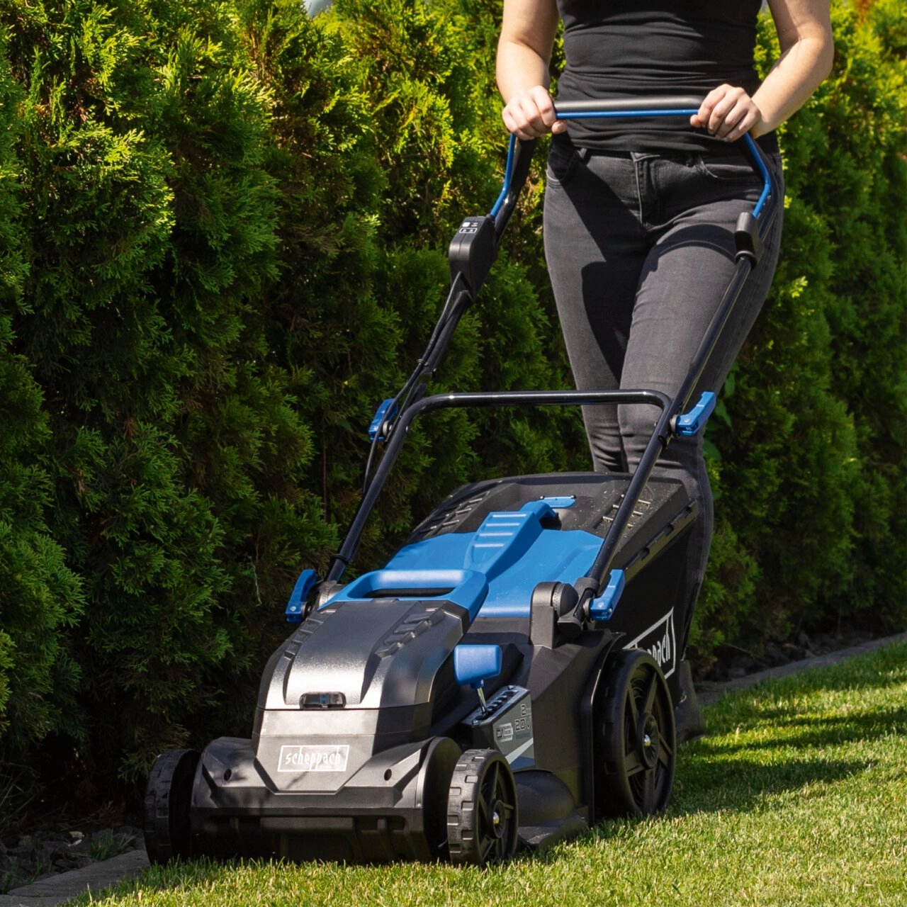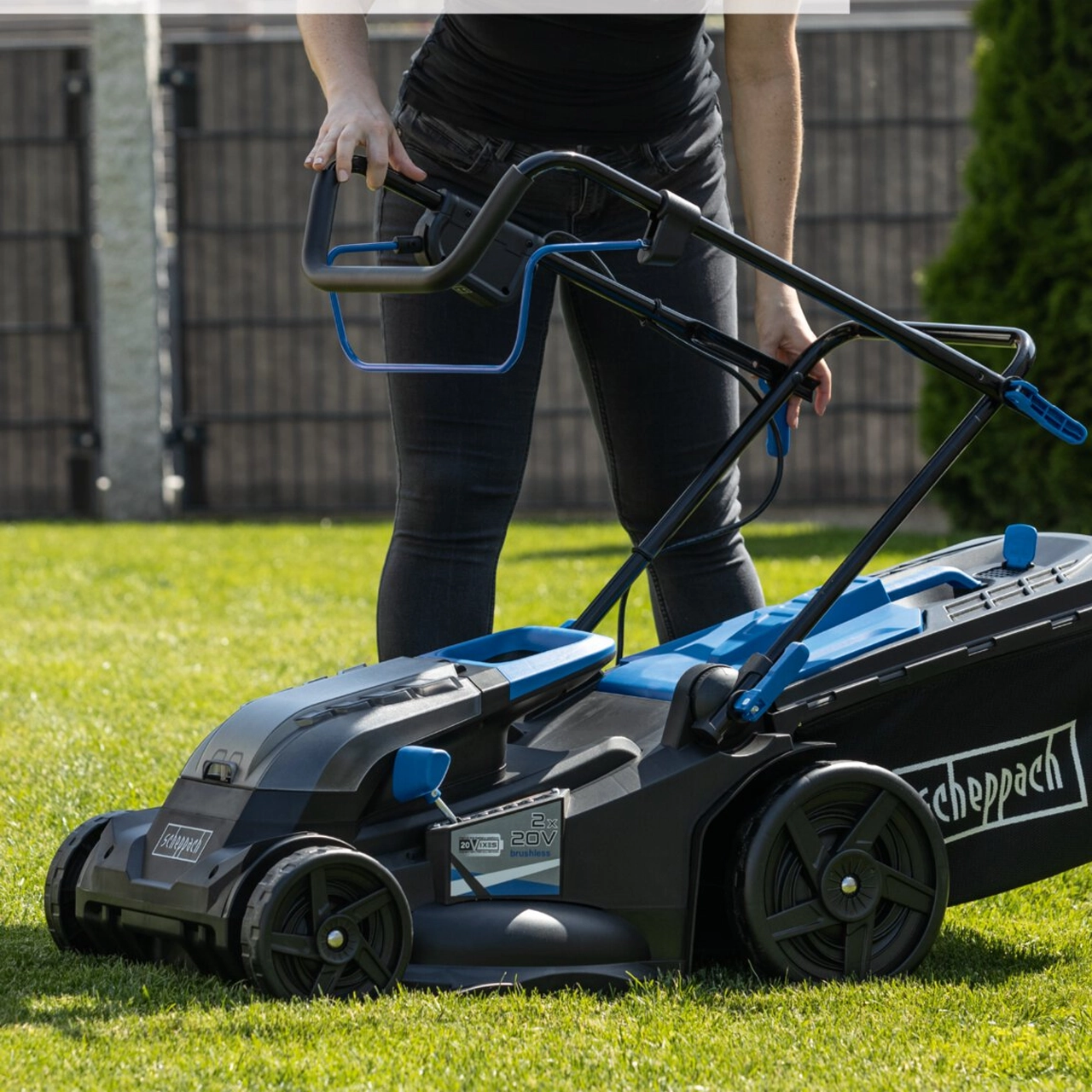- Bežični rad sa Scheppach IXES 20-voltnom serijom – sve baterije i punjači iz sistemske ponude mogu se kombinovati sa bežičnom kosilicom.