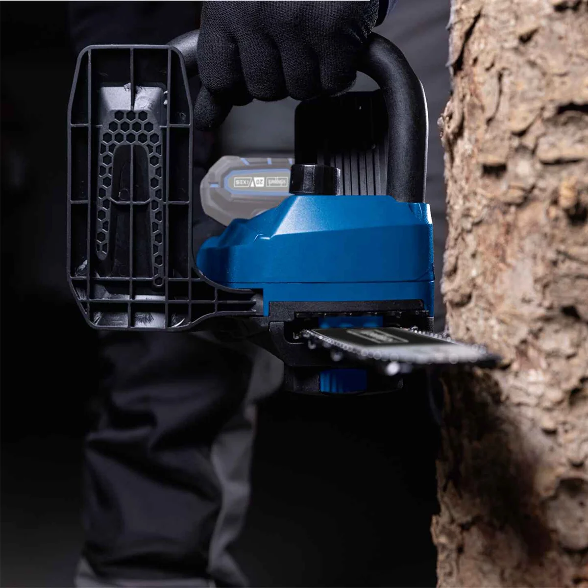 Akumulatorska motorna pila Scheppach C-CS254-X je moćan pomoćnik za rezanje drva za ogrev, orezivanje ili skraćivanje grmlja. Visokokvalitetno sečivo ProCut od 10” / 25,4 cm i brzina rezanja od 6 m/s omogućavaju brz napredak testere i optimalne rezultate rezanja. Zaštita od povratnog udarca zaustavlja lanac u roku od nekoliko milisekundi u slučaju povratnog trzaja, čime se osigurava maksimalna sigurnost pri piljenju. Kao dio Scheppach IXES 20-voltne serije, sve baterije i punjači iz serije sistema mogu se kombinovati sa motornom testerom.