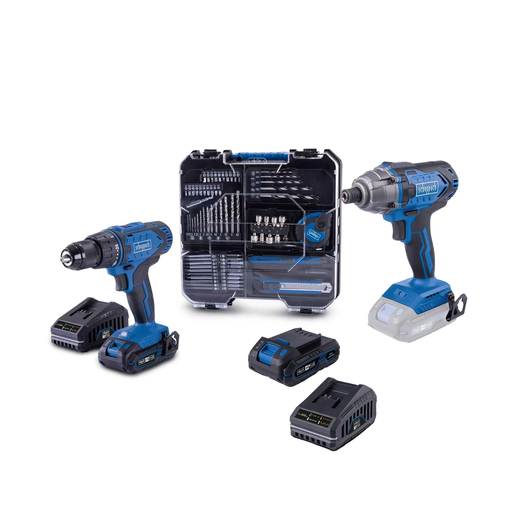 Set se sastoji od: Aku udarni odvijač 180 Nm 1/4” IXES C-ID180-X – Solo Aku bušilica odvijač sa 74 komada pribora IXES C-DTB74/1-X – Kit 1 x IXES baterija 20 V 2 Ah 1 x IXES brzi punjač