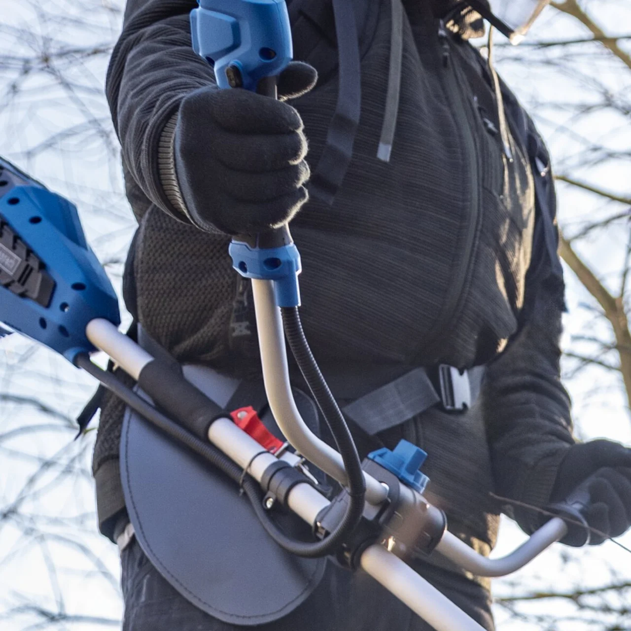 - Isporučeni pribor: Baterija 2 x 4 Ah Dupli punjač 2.4 A Trokraki nož 255 mm Silk 4m x 1.6 mm Pojas za nošenje trimera na oba ramena