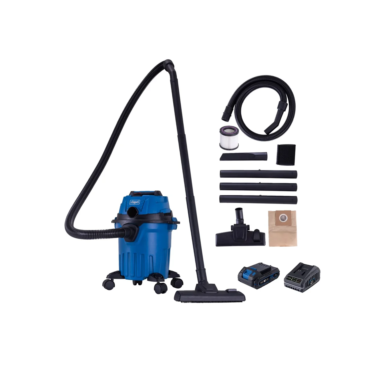 Kompaktni usisivač za mokro i suvo usisavanje sa snagom usisavanja od 10 kPa, pogodan za usisavanje tečnosti, prašine i za izduvavanje vazduha. Bežični rad uz Scheppach IXES 20-voltni sistem – svi akumulatori i punjači iz ove serije kompatibilni su sa akumulatorskim suvo mokro usisivačem. Veliki radni domet zahvaljujući crevu dužine 1,5 m, aluminijumskoj teleskopskoj cevi i plastičnoj produžnoj cijevi. Čvrsta plastični spremnik  kapaciteta 12 L