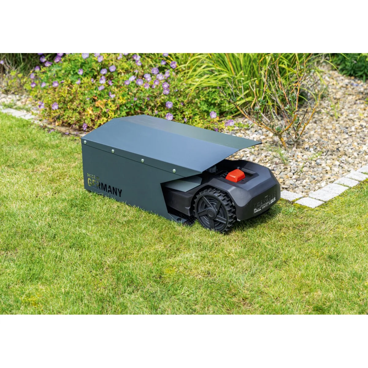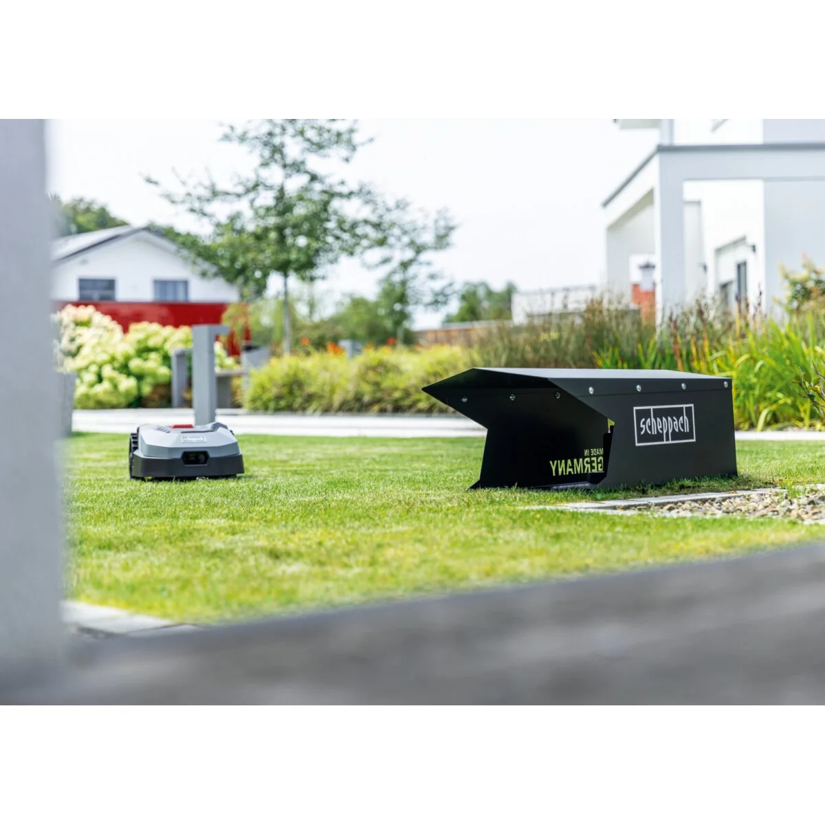 Odgovarajuća garaža idealan je dodatak Scheppach robotskim kosilicama. Originalna Scheppach garaža za robotske kosilice “RoboHome” pouzdano štiti kosilicu i stanicu za punjenje od padavina, vlage i sunca. Napravljen od čelika premazanog prahom, kućište za robotsku kosilicu je posebno robusno i izdržljivo. Garaža se takođe može lako sastaviti zajedno sa stanicom za punjenje..
