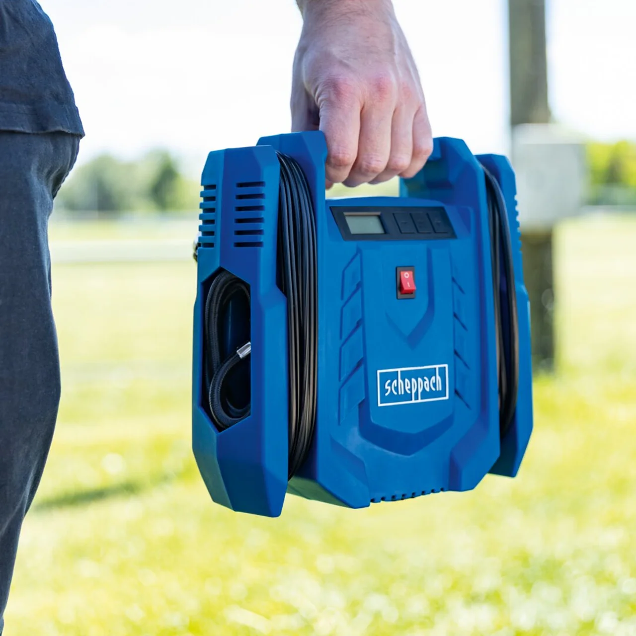 - Isporučeni pribor: kuglična igla konusni adapter adapter za gume crijevo pod pritiskom 60 cm 12 V kabal dužina 4 m 230 V kabal dužine 2 m