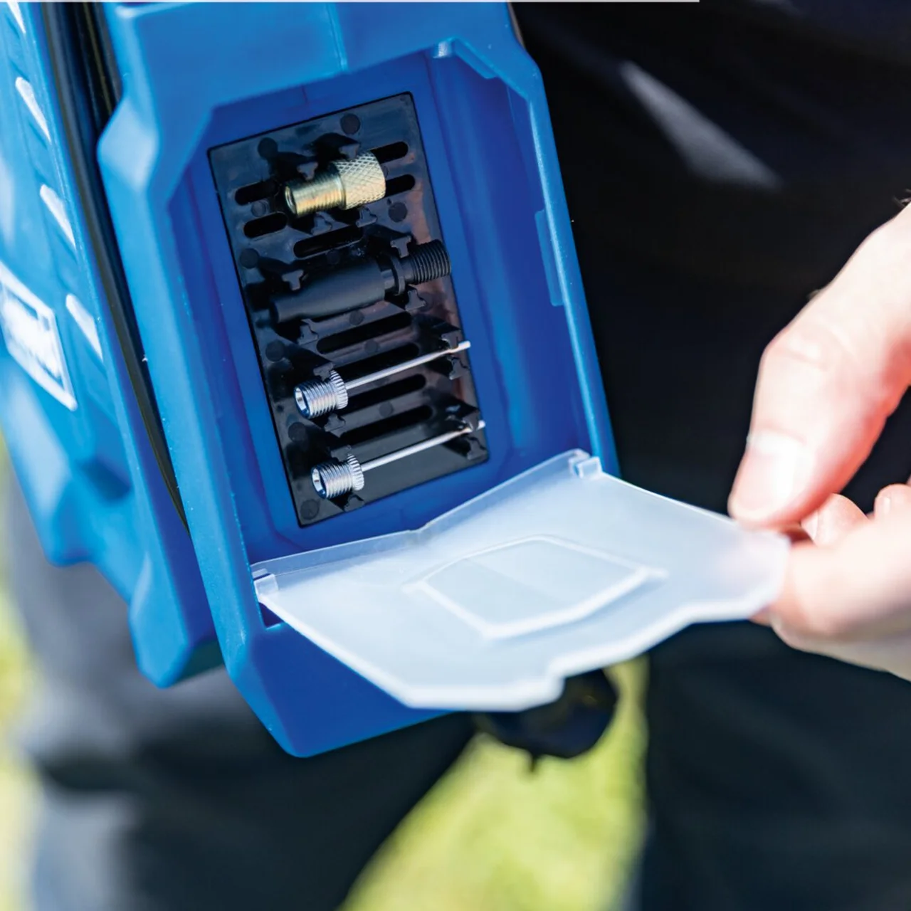 Airforce 7 sa radnim pritiskom od 8 bara i usisnim kapacitetom od 24 litre u minuti, idealan je za naduvavanje guma bicikala ili automobila, kao i igračaka i sportske opreme. Praktičan, prenosivi kompresor – idealan za automobile ili za naduvavanje automobilskih guma, Može se koristiti sa 12 V i 230V Maksimalni radni pritisak 8 bara Sa automatskim isključivanjem kada se dostigne podešeni pritisak. Kablovi i pribor mogu se sigurno i na način koji štedi prostor skladištiti direktno na uređaju. Digitalni displej prikazuje trenutni radni pritisak. Veliki radni radijus zahvaljujući crijevu za vazduh pod pritiskom od 0.6 m i priključnom kablu od 2 m na 230 V ili 4 m na 12 V Noge sa prigušenim vibracijama za povećanu sigurnost tokom puštanja u rad Kompresor bez ulja i stoga minimalno održavanje Uključuje 2x kuglaste igle, 1x konusni adapter, 1x adapter za gume