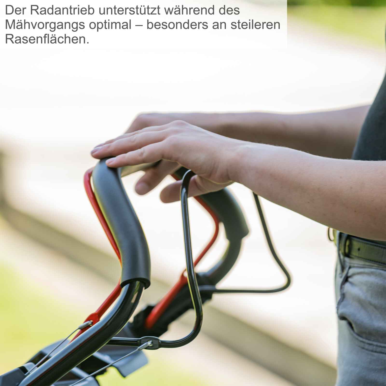 Udobna ručka i samohodni točkovi sa dvostrukim kugličnim ležajevima čine manevrisanje veoma lakim. Visina skraćene trave lako se bira pomoću centralnog podešavanja. Podešavanje se vrši u 7 koraka (od 25 do 75 mm). Tako se svaki ukrasni travnjak može obraditi jednako profesionalno kao i onaj za igru.