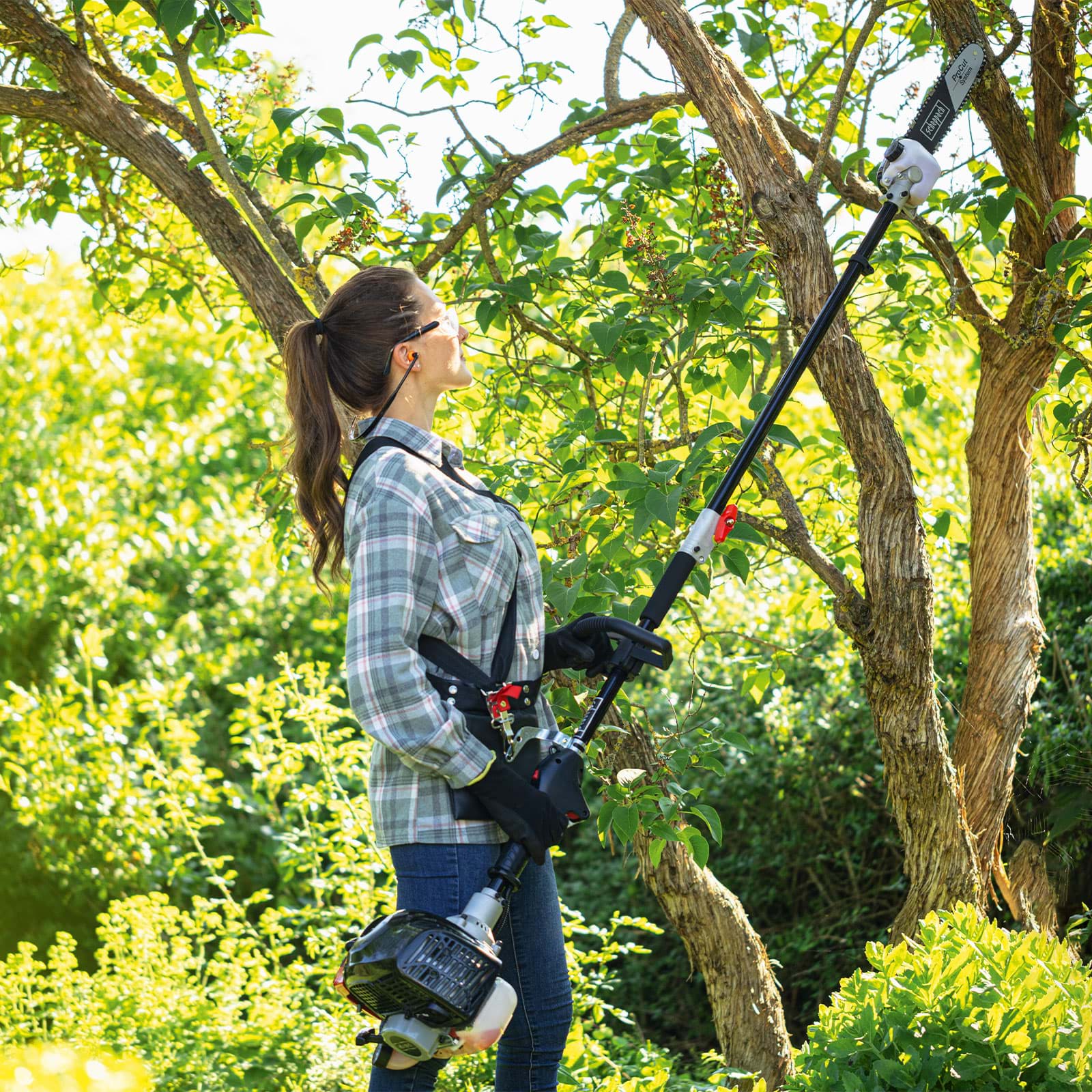 Šipka za obrezivanje s ProCut šipkom i lancem od 10″ pravi je izbor za njegu drveća. Automatsko podmazivanje lanca osigurava nesmetan radni proces prilikom rezanja. Sa ukupnom dužinom od 2100 mm, od čega je 254 mm dužina rezanja, grane i grančice mogu se lako ukloniti sa tla.