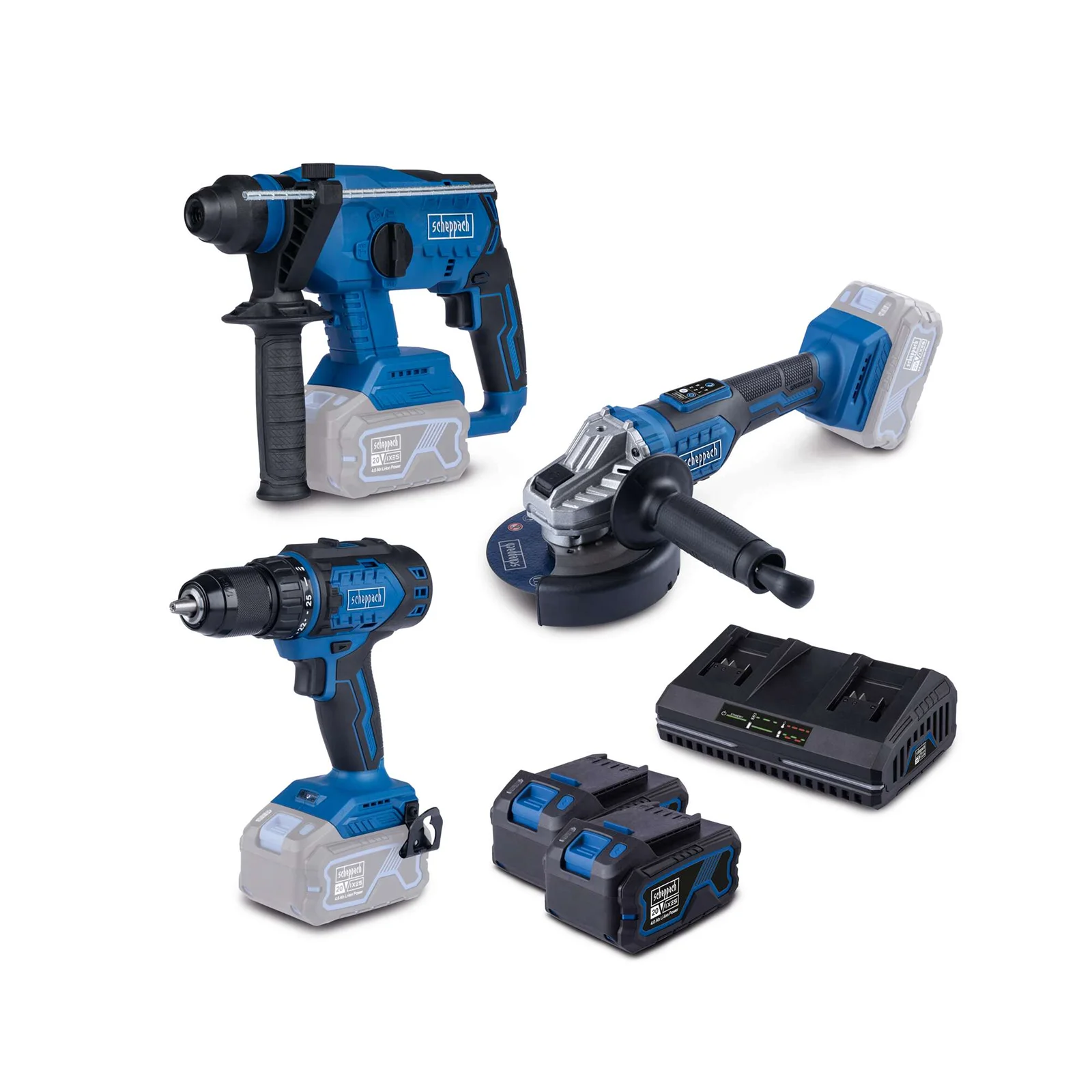 Set se sastoji od: Aku bušilica odvijač IXES BC-DD60-X Aku ugaona kutna brusilica Brushless IXES BC-AG125-X Aku udarna čekić bušilica SDS PLUS Brushless IXES BC-RHD230-X 2 x baterije od 4.0 Ah Dvostuki punjač 2.4 A
