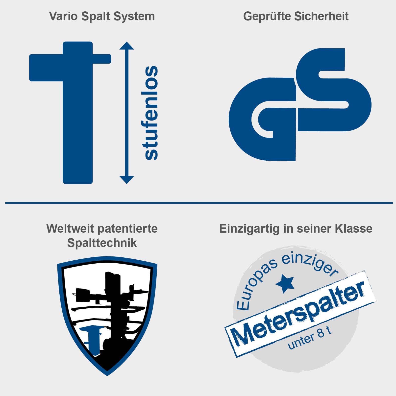 Maksimalna bezbednost za korisnika je osnovni zahtjev pri rukovanju teškom opremom: Compact 8t se sastoji od čelične konstrukcije otporne na torziju, praškasto obložene i ima uređaj za pričvršćivanje materijala za cjepanje i držače za hvatanje materijala za cjepanje postavljene sa obje strane. Uređaj se može koristiti samo sa dvije ruke. GS sertifikovani cjepač trupaca tako odgovara najnovijim bezbjednosnim standardima.