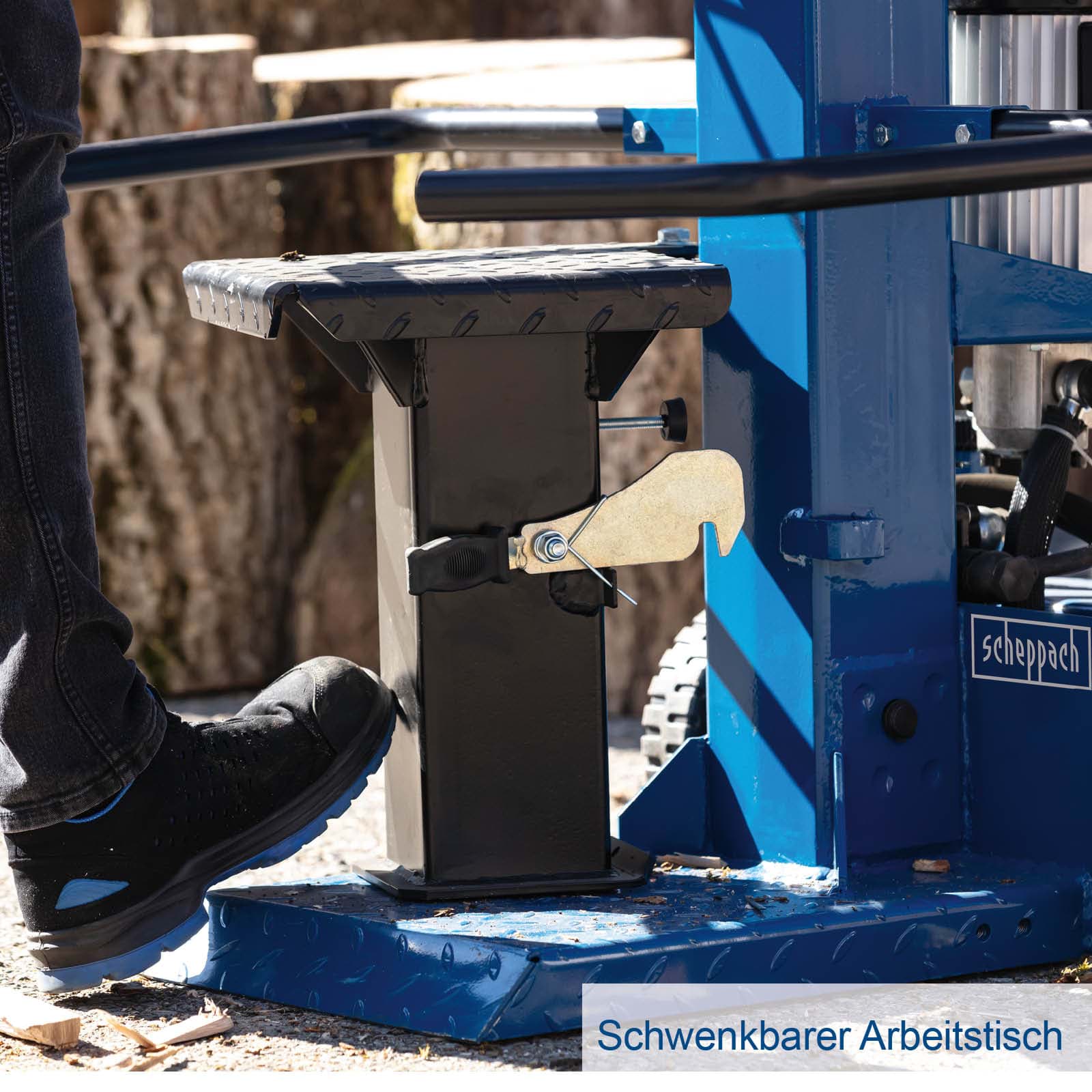 Zahvaljujući patentiranoj tehnologiji cjepanja, scheppach Compact 8t je jedini cjepač u Evropi koji može da cjepa ispod 8 tona drva dužine do 1070 mm i prečnika od 80 do 350 mm. Dvije radne visine su dostupne sa integrisanim, okretnim stolom: Trupci maksimalne dužine se postavljaju na osnovnu ploču i tako se mogu obraditi u nivou poda. Manja debla se jednostavno postavljaju na podignuti sto radi obrade.