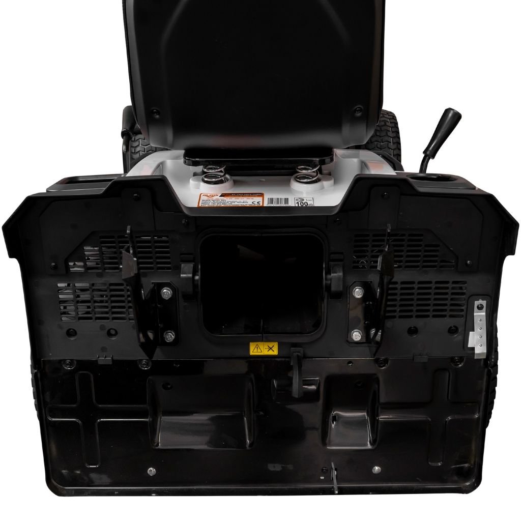 Traktor omogućava prilagođavanje visine košenja u sedam nivoa, u rasponu od 30 do 90 mm, što omogućava preciznu prilagodbu različitim tipovima travnjaka. Radna širina od 980 mm značajno povećava efikasnost, pokrivajući veliku površinu pri svakom prolazu i skraćujući vreme rada.
